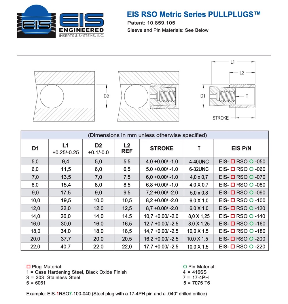 EIS-RSO Metric Series PULLPLUGS™ / Precision Flow Control Restrictors